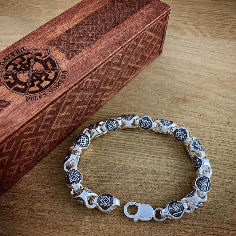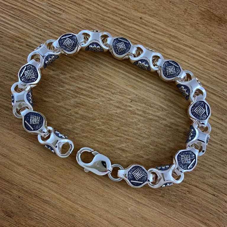 Обережный браслет из серебра 925 пробы с чернение.